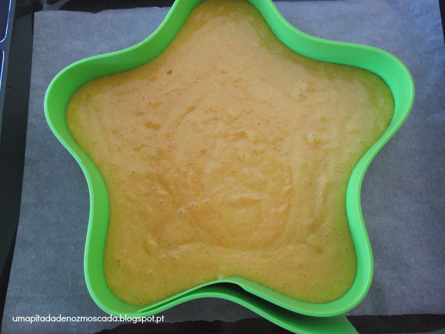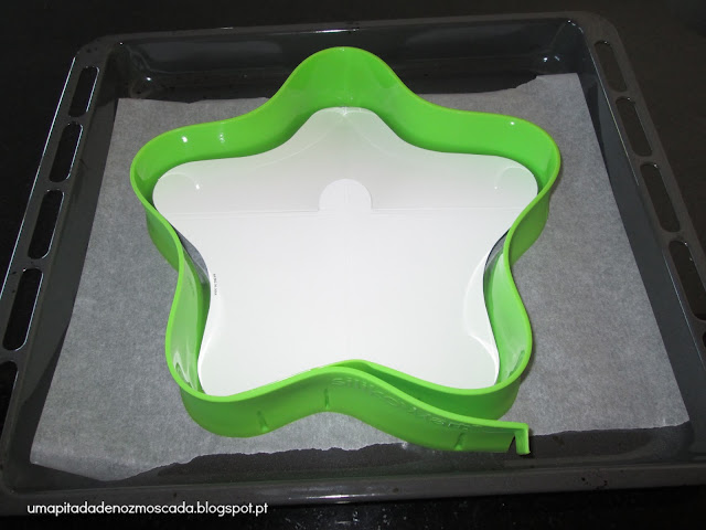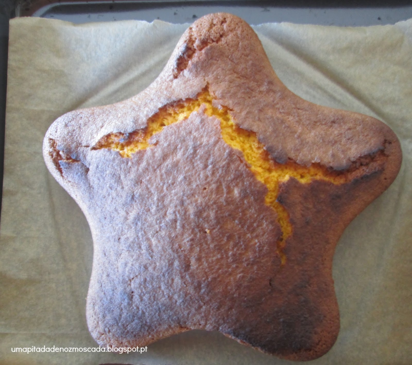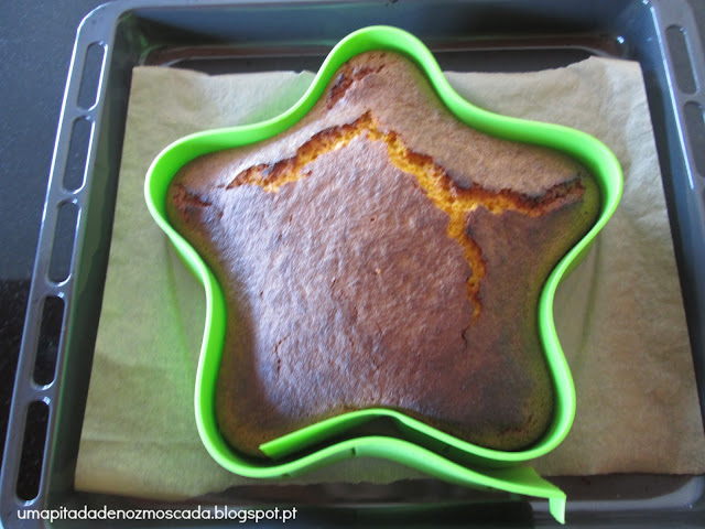 O formato escolhido ficou a cargo do meu pequeno príncipe, que não teve dúvidas em eleger a estrela. Estava então dado o mote para fazer um bolo para sobremesa do jantar :)