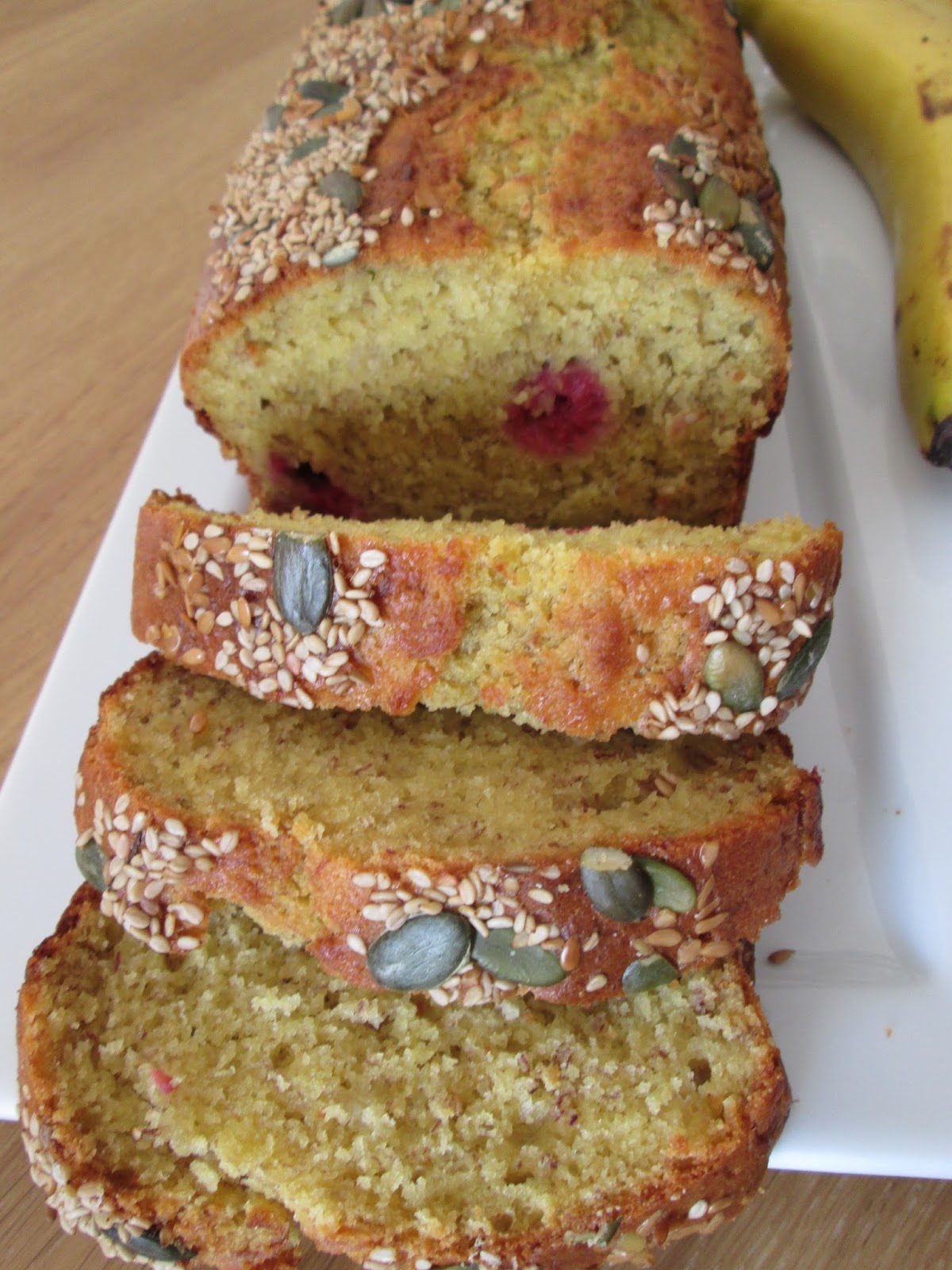 A receita de hoje é um Pão de Banana e Framboesa, ótimo para quem gosta de sobremesas pouco doces. Tem uma consistência fofa e um leve sabor a banana. É também excelente para usar aquelas bananas que estão na fruteira a pedir para serem usadas de tão maduras que estão. Como disse, não é um pão demasiado doce, mas de sabor agradável e crocante por fora. Experimentem!